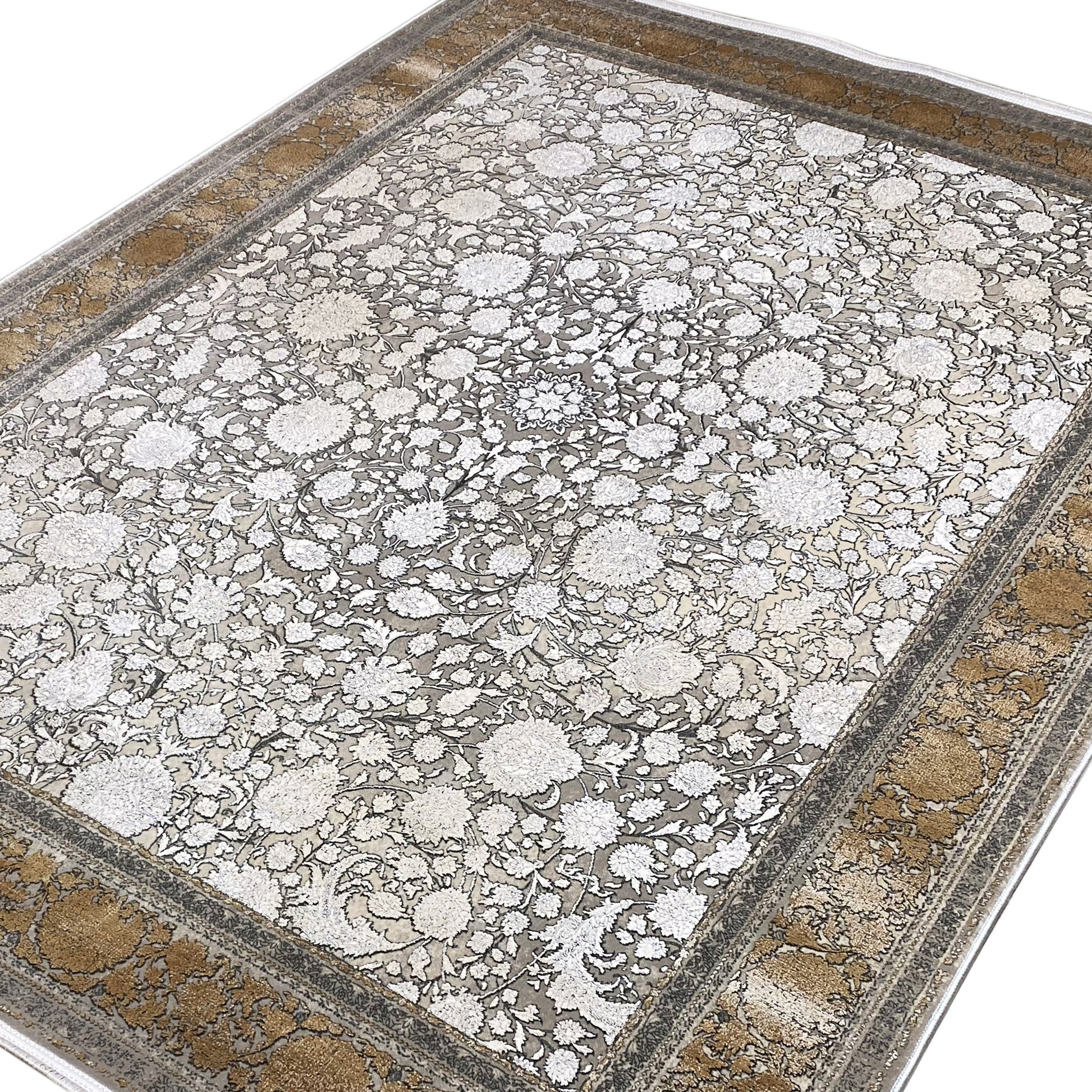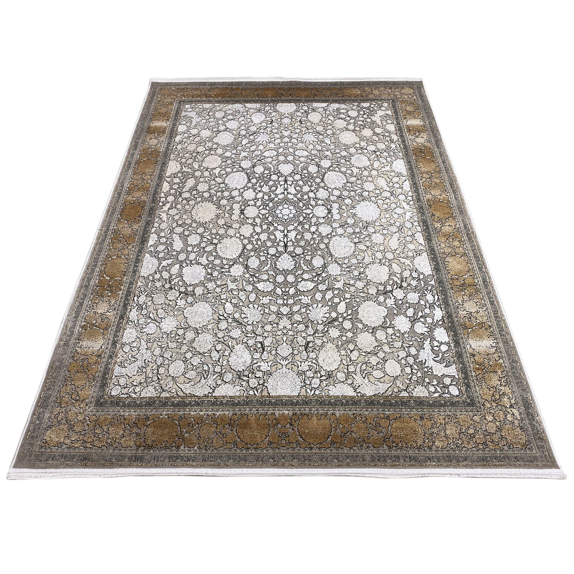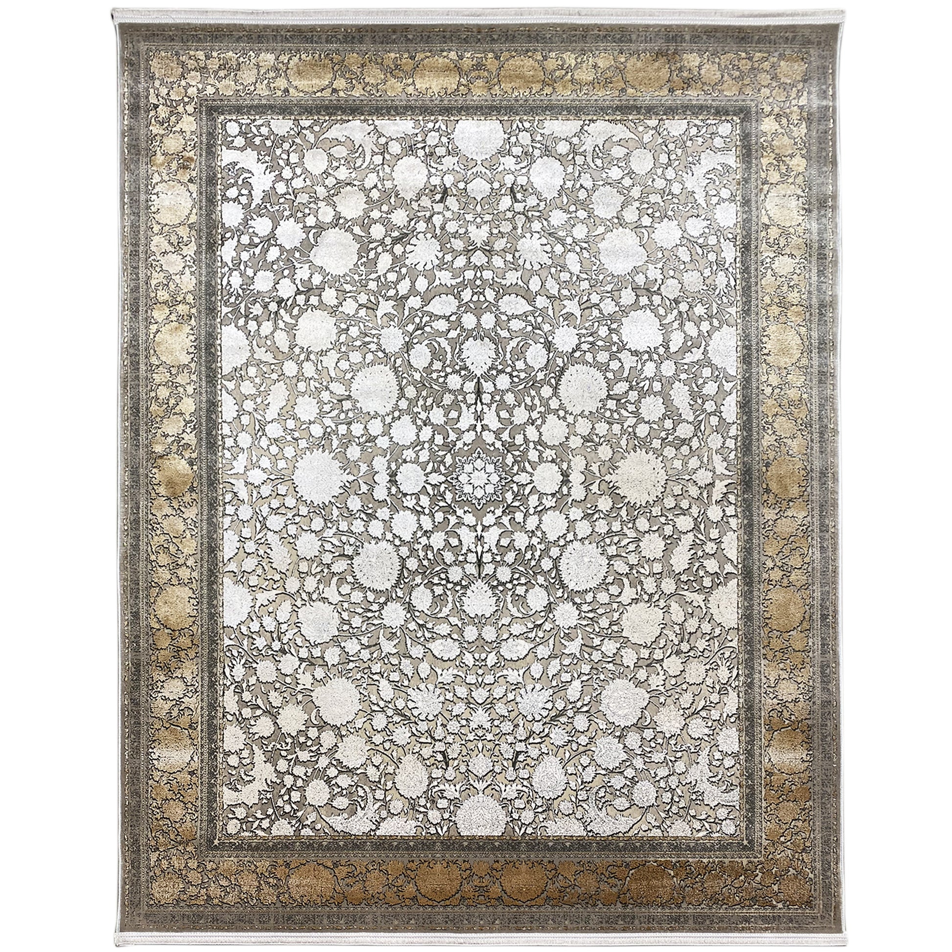 Dona alla tua casa un tocco di eleganza senza tempo con questo splendido tappeto classico. Il suo straordinario motivo floreale continuo in tonalità argento e oro scintillanti crea una sensazione di lusso e profondità. Realizzato in 100% acrilico trattato termicamente, questo tappeto morbido e resistente è perfetto per aree ad alto traffico, unendo uno stile squisito a una resistenza moderna. Le dimensioni generose di 170x240cm sono ideali per aggiungere un tocco raffinato al tuo soggiorno, camera da letto o sala da pranzo.