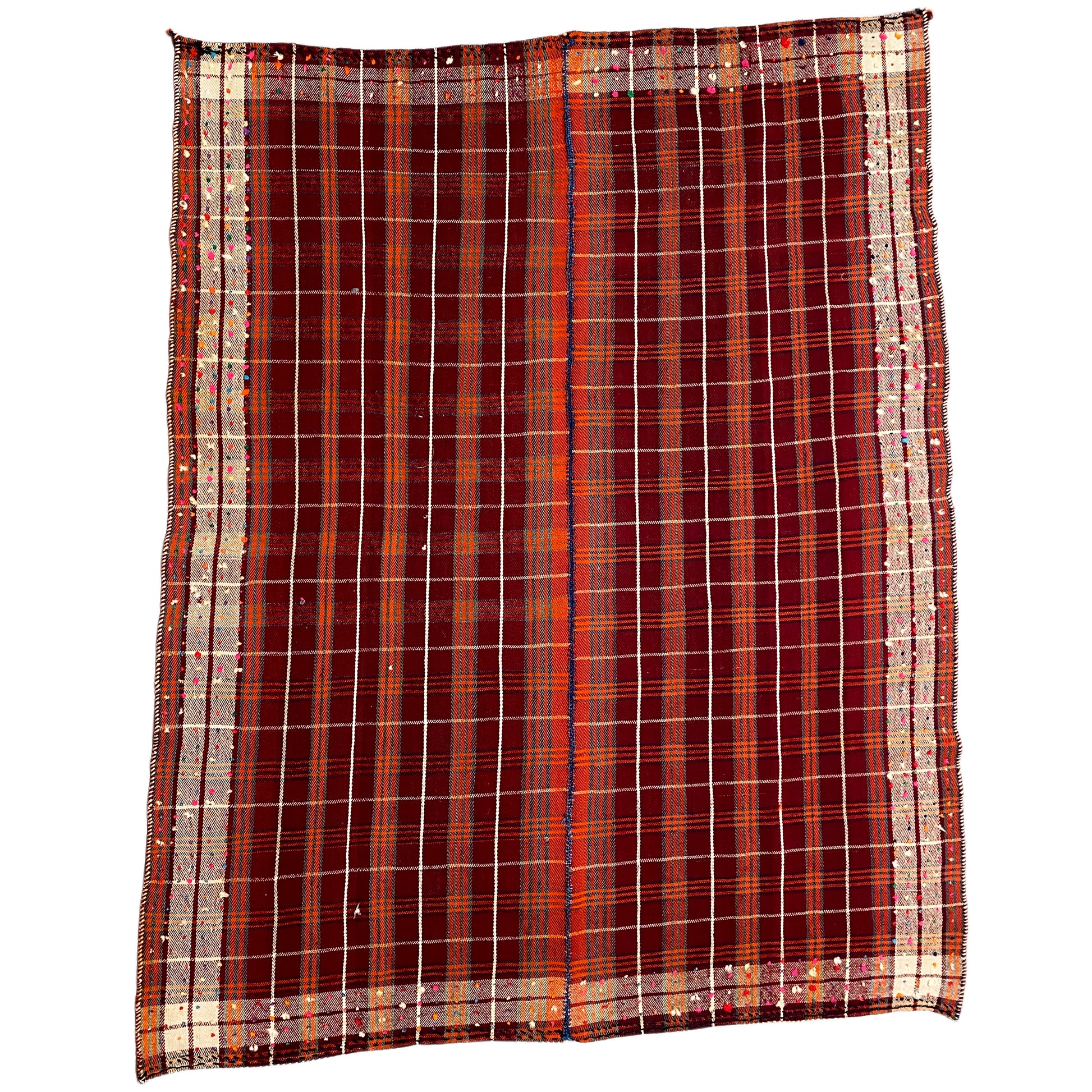 Dieser Jajim wurde von nomadischen Webern auf einem traditionellen Horizontalwebstuhl gefertigt. Leichte Formunregelmäßigkeiten gehören zu seiner Authentizität und zeugen von echter Stammeskunst – jedes Stück ein Unikat mit Seele, Geschichte und Persönlichkeit. Ein maschinell gefertigter Teppich kann perfekt symmetrisch sein – doch nur ein handgewebter Jajim wie dieser trägt die einzigartige Handschrift seines Webers in sich.