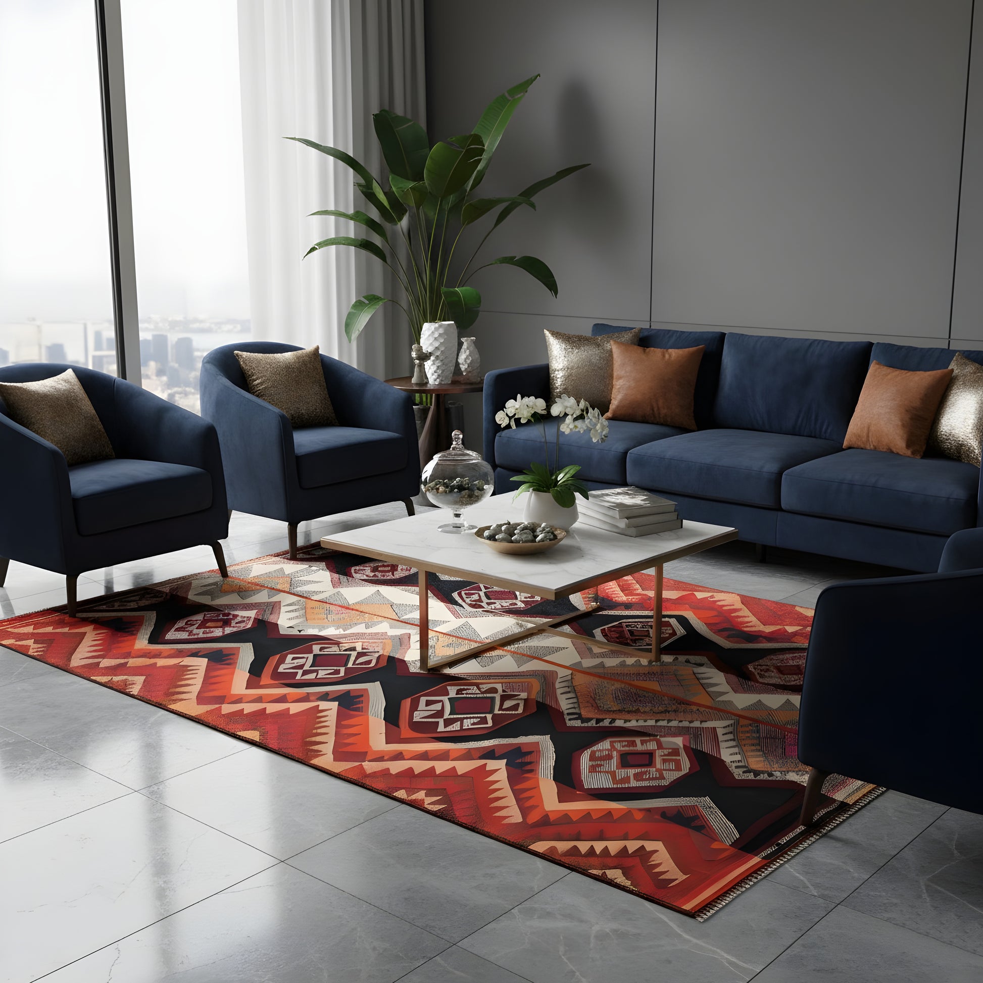Dieser handgewebte Jajim Teppich aus handgesponnener Wolle beeindruckt mit seinem markanten ethnischen Muster in kräftigen Schwarz-, Rot-, Orange- und Cremetönen, das perfekt zu traditionellen und Boho-inspirierten Dekorstilen passt; seine Größe von 222x149 cm macht ihn ideal für Wohn-, Schlaf- und Essbereiche, während die robuste Wollqualität, die präzise Webkunst und das geometrisch ornamentale Design jedem Raum Wärme, Tiefe und authentischen Charakter verleihen.