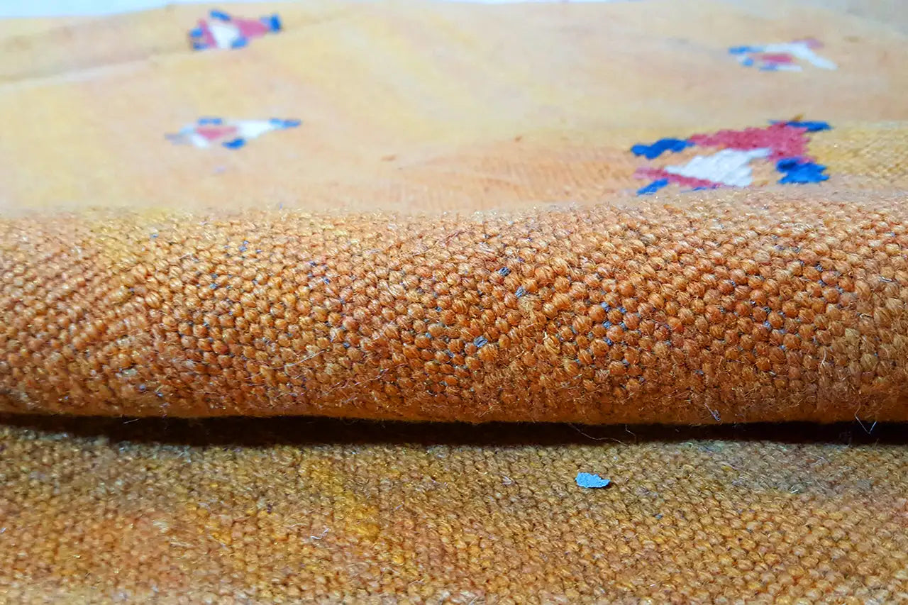 A differenza dei nostri altri tappeti, i Kilim sono tessuti e non annodati. Questo processo di lavorazione rende il Kilim molto piatto. Anche questo metodo di produzione è una tradizione nomade secolare. I nomadi non usavano i tappeti tessuti finiti solo come decorazione per il pavimento, ma anche come decorazione da parete o come materiale per realizzare tende. Tecniche di lavorazione speciali e colori naturali ricavati dalle piante conferiscono ai Kilim un aspetto unico.