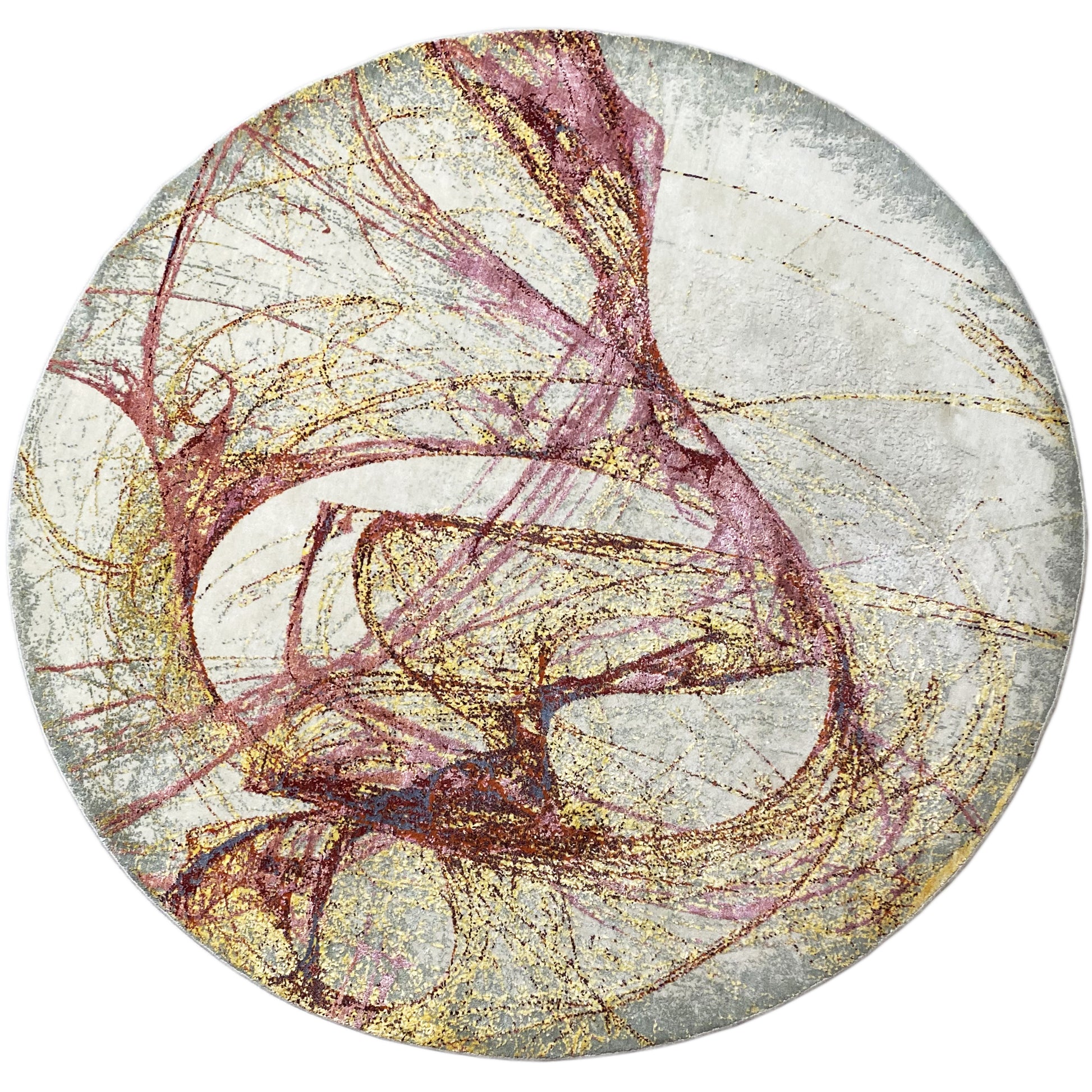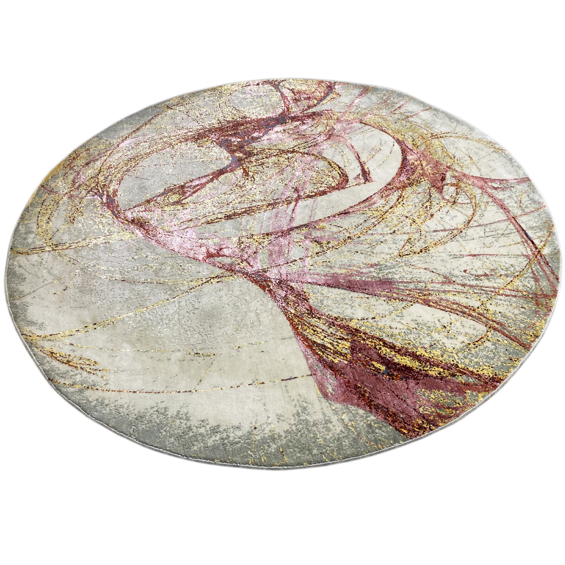 Questo tappeto rotondo annodato a mano, realizzato con una miscela di lana filata a mano e viscosa, è un'opera d'arte moderna per il tuo pavimento. Il motivo astratto in rosa e oro su fondo beige dona al tuo ambiente un tocco lussuoso e allo stesso tempo giocoso. Con una dimensione di 202x202 cm, è un'aggiunta elegante per il soggiorno o la camera da letto, creando un'atmosfera calda e accogliente.