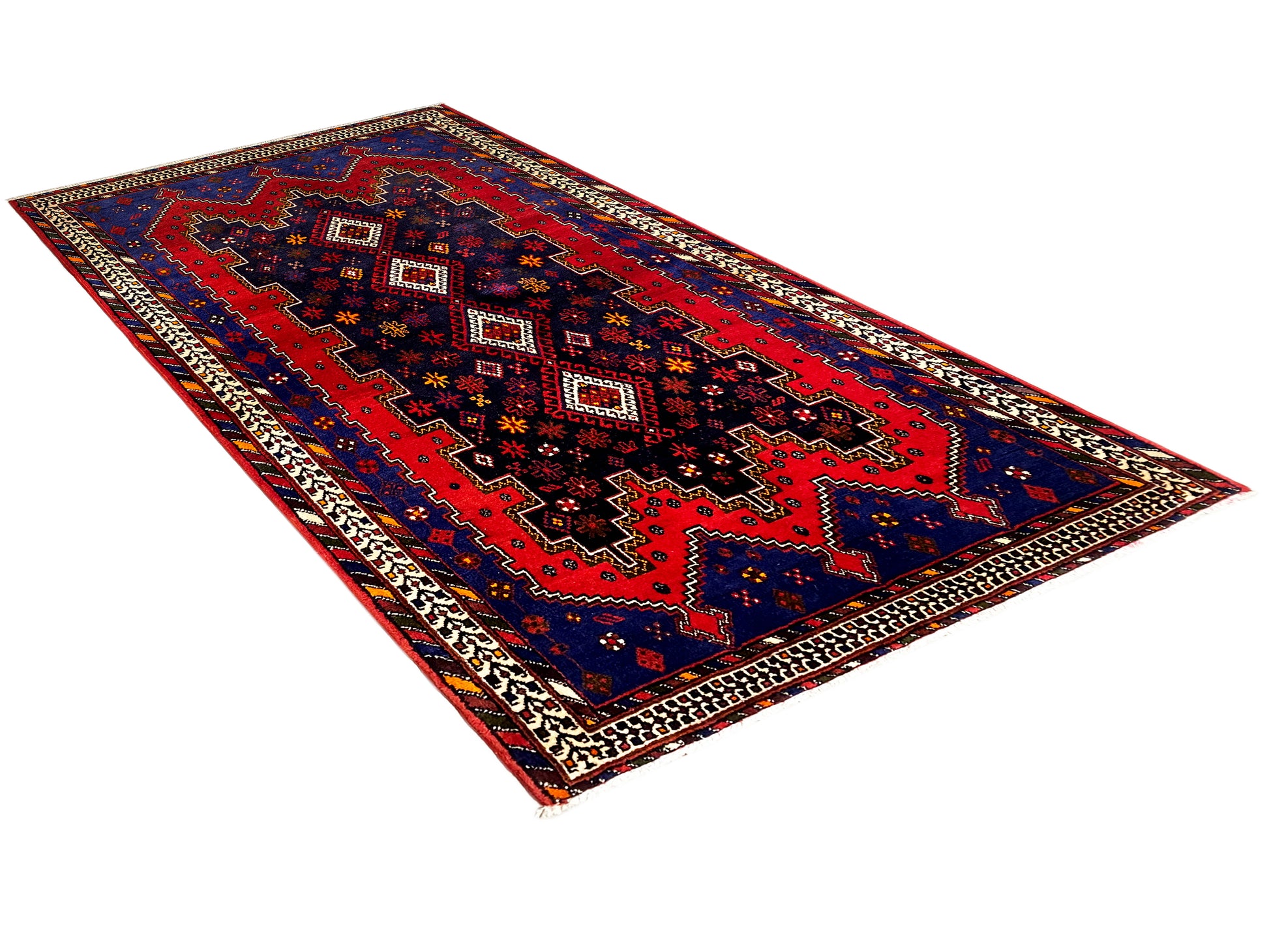 Questo corridore Sirjan annodato a mano, proveniente dalla regione di Sirjan nel sud della Persia (Iran), realizzato con lana di alta qualità filata a mano, presenta un design caratteristico e tradizionale in tonalità profonde di blu scuro e rosso, accentuato da dettagli chiari. Con le sue dimensioni di 208x107 cm, è ideale per valorizzare con stile corridoi, ingressi o spazi stretti. Il motivo geometrico marcato con motivi a rombo ripetuti e elementi floreali stilizzati nei bordi riflette l'arte tradizionale dell'annodatura della regione di Sirjan. L'uso della lana filata a mano conferisce a questo tappeto una texture particolare e una lunga durata. Questo corridore Sirjan si armonizza splendidamente con stili d'arredo rustici, tradizionali e di ispirazione etnica, donando a ogni ambiente un'atmosfera calda, autentica e caratteristica. Questo tappeto non è solo una copertura per pavimenti, ma una finestra sulla ricca tradizione dell'arte dei tappeti persiani e un'espressione di stile e individualità.