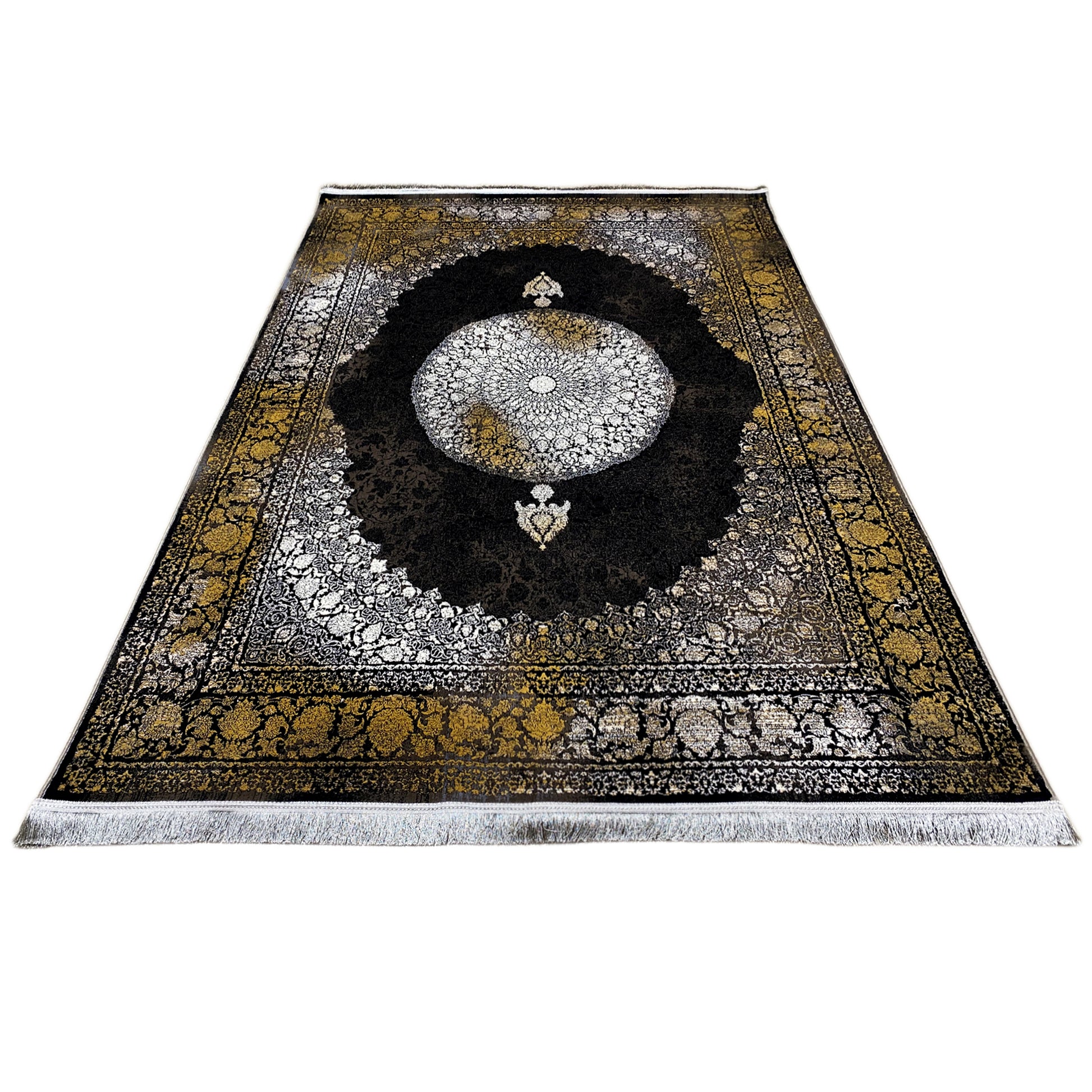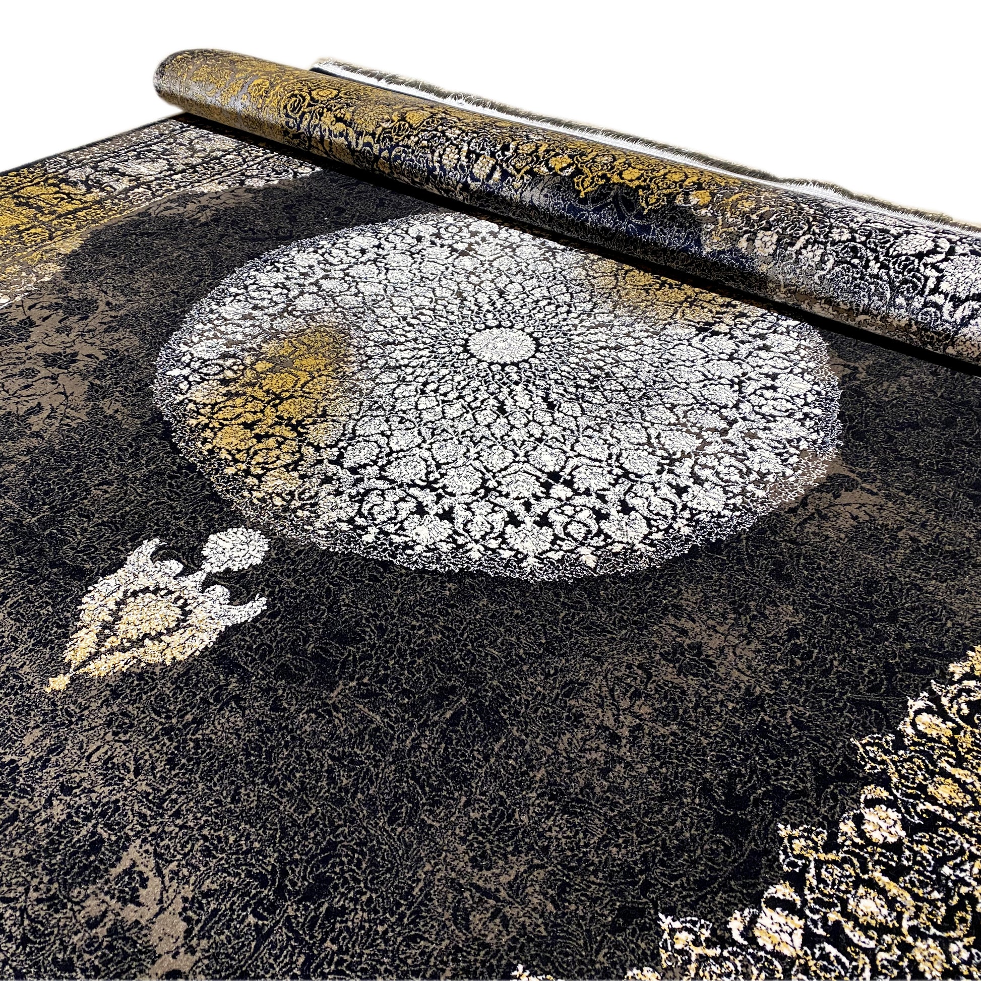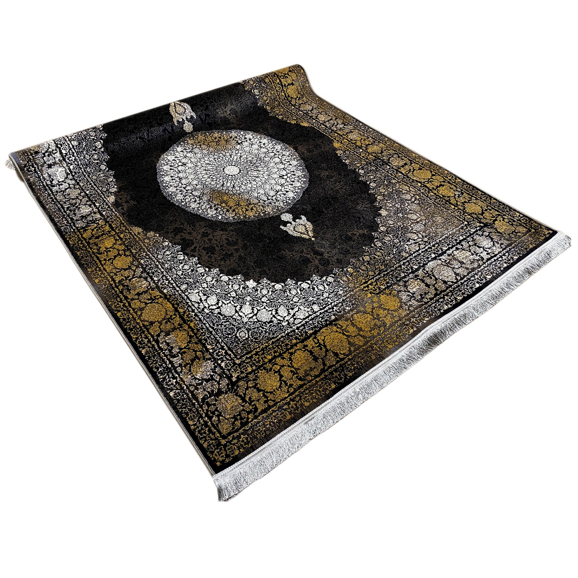 Dona alla tua casa un tocco di elegante lusso con questo splendido tappeto classico. Il campo interno fumoso e appariscente crea un contrasto impressionante con il bordo chiaro e dorato e il medaglione dettagliato al centro. Realizzato in 100% acrilico trattato termicamente, questo tappeto morbido e resistente è perfetto per aree ad alto traffico, poiché unisce uno stile lussuoso a una resistenza moderna. Le dimensioni generose di 170x240cm sono ideali per aggiungere un punto focale elegante al tuo soggiorno o camera da letto.