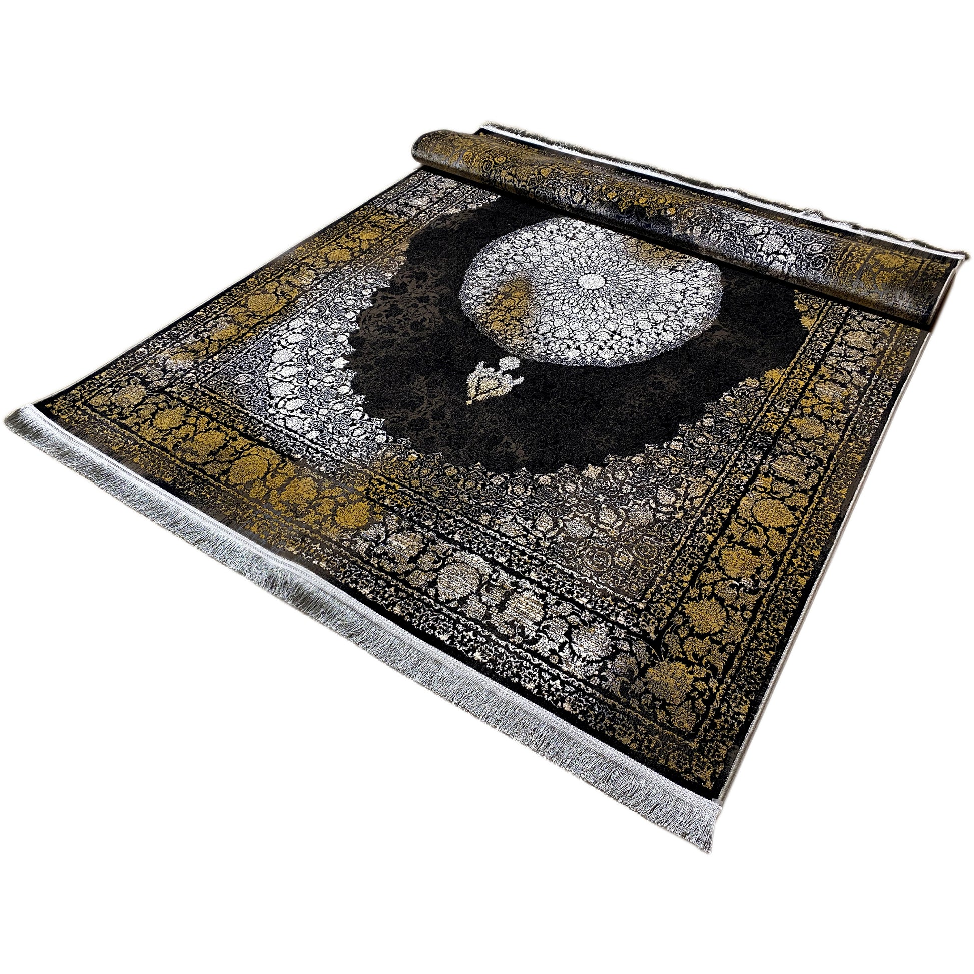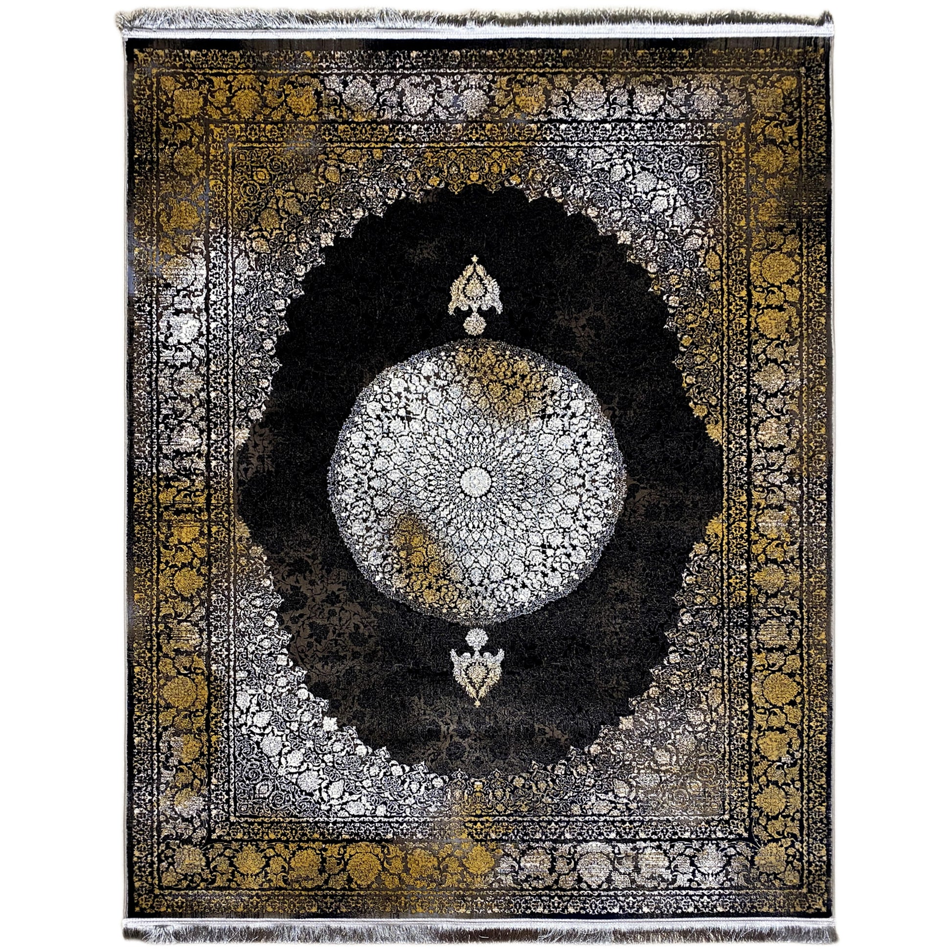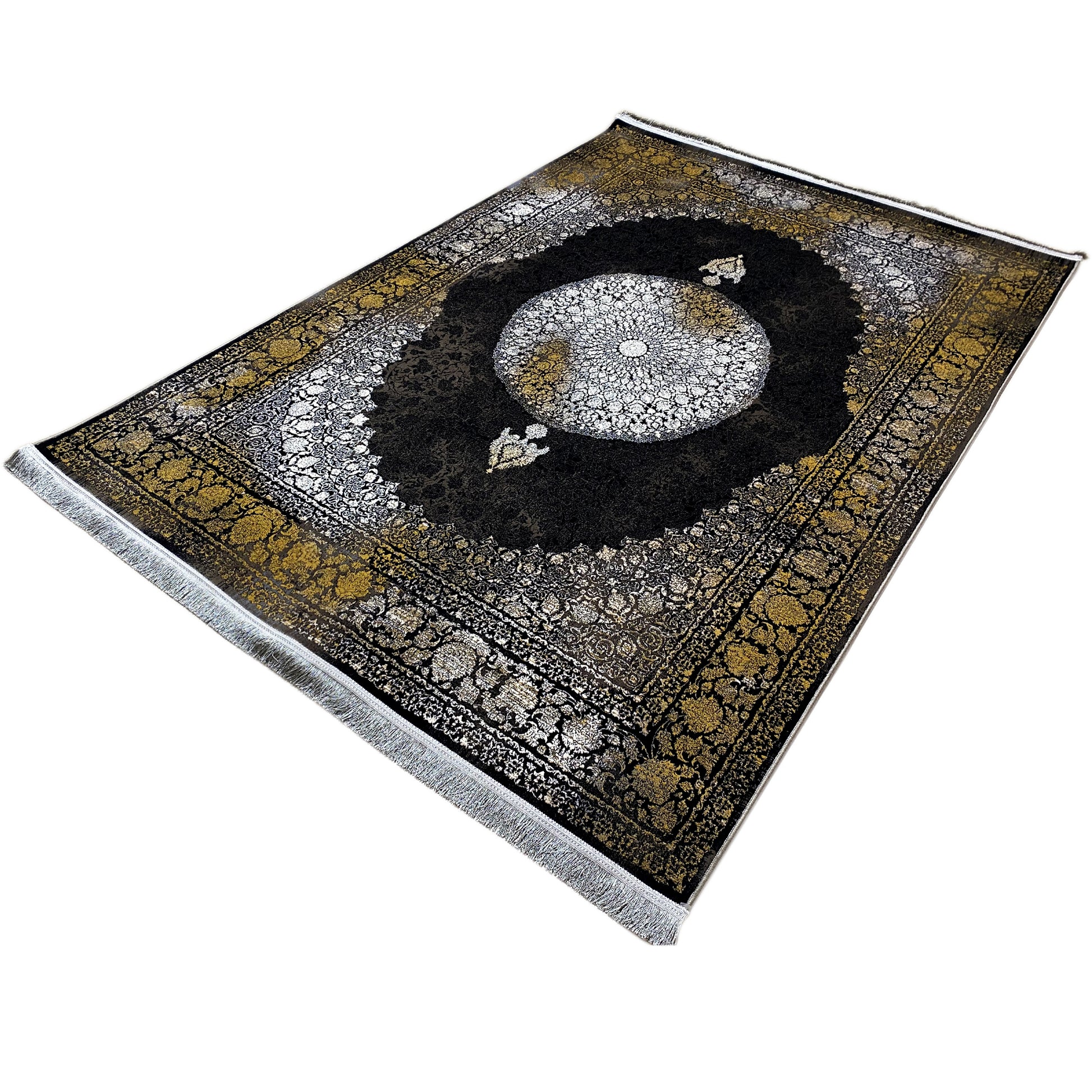Dona alla tua casa un tocco di elegante lusso con questo splendido tappeto classico. Il campo interno fumoso e appariscente crea un contrasto impressionante con il bordo chiaro e dorato e il medaglione dettagliato al centro. Realizzato in 100% acrilico trattato termicamente, questo tappeto morbido e resistente è perfetto per aree ad alto traffico, poiché unisce uno stile lussuoso a una resistenza moderna. Le dimensioni generose di 170x240cm sono ideali per aggiungere un punto focale elegante al tuo soggiorno o camera da letto.