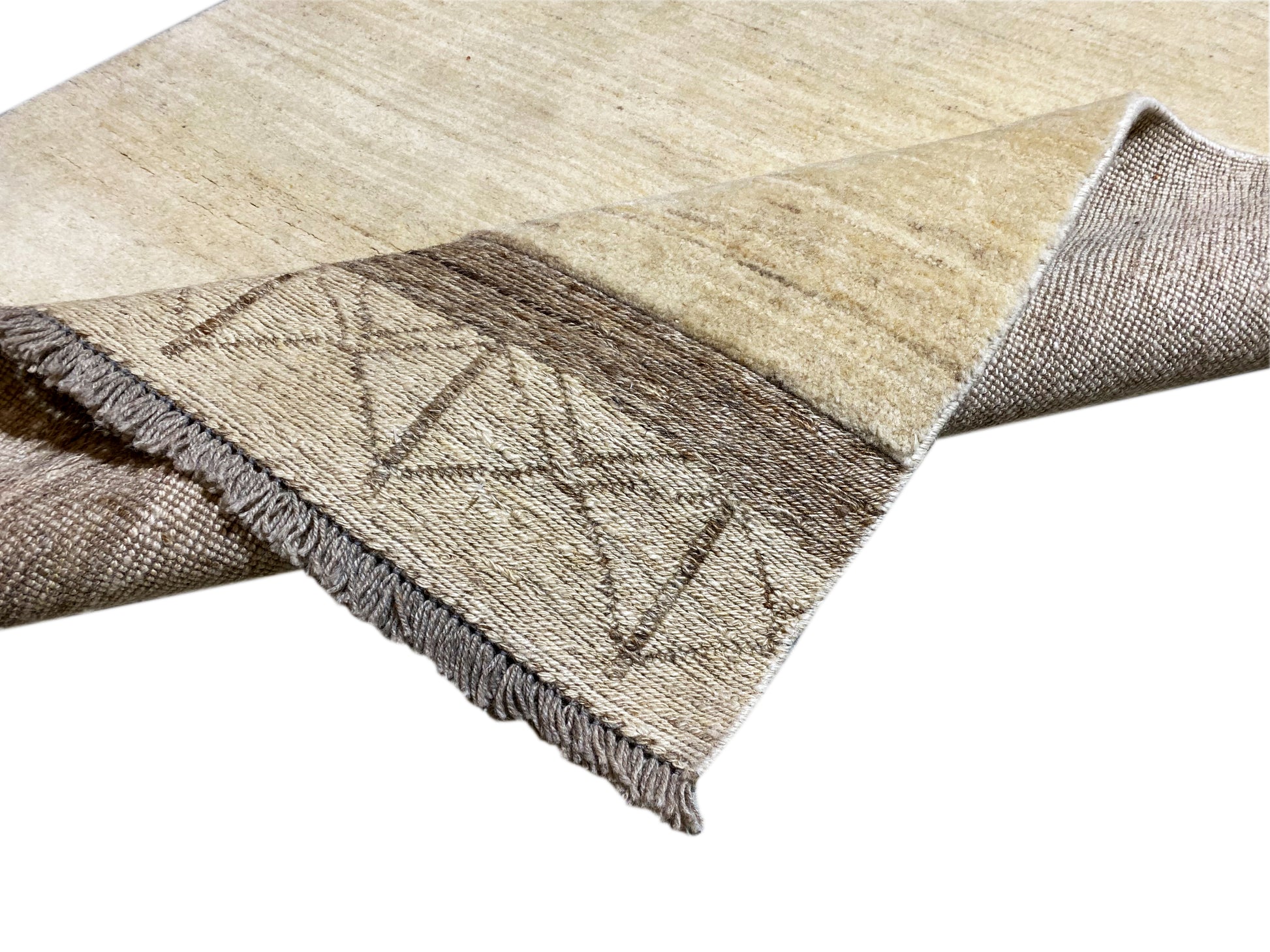 Questo tappeto Kelim Gabbeh tessuto a mano in 100% lana filata a mano si distingue per il suo elegante colore di base beige con marcate strisce marroni e sottili dettagli etnici ai bordi. Con le sue dimensioni di 177x113 cm è ideale per spazi abitativi più piccoli, corridoi o come accento di stile nella camera da letto. Il tappeto si integra perfettamente in stili d’arredo moderni, scandinavi e ispirati al boho, mentre il motivo a strisce nette con elementi tribali discreti crea un aspetto armonioso e al contempo caratteristico. Grazie alla lavorazione di alta qualità offre durata, comfort e una piacevole sensazione di morbidezza sotto i piedi.