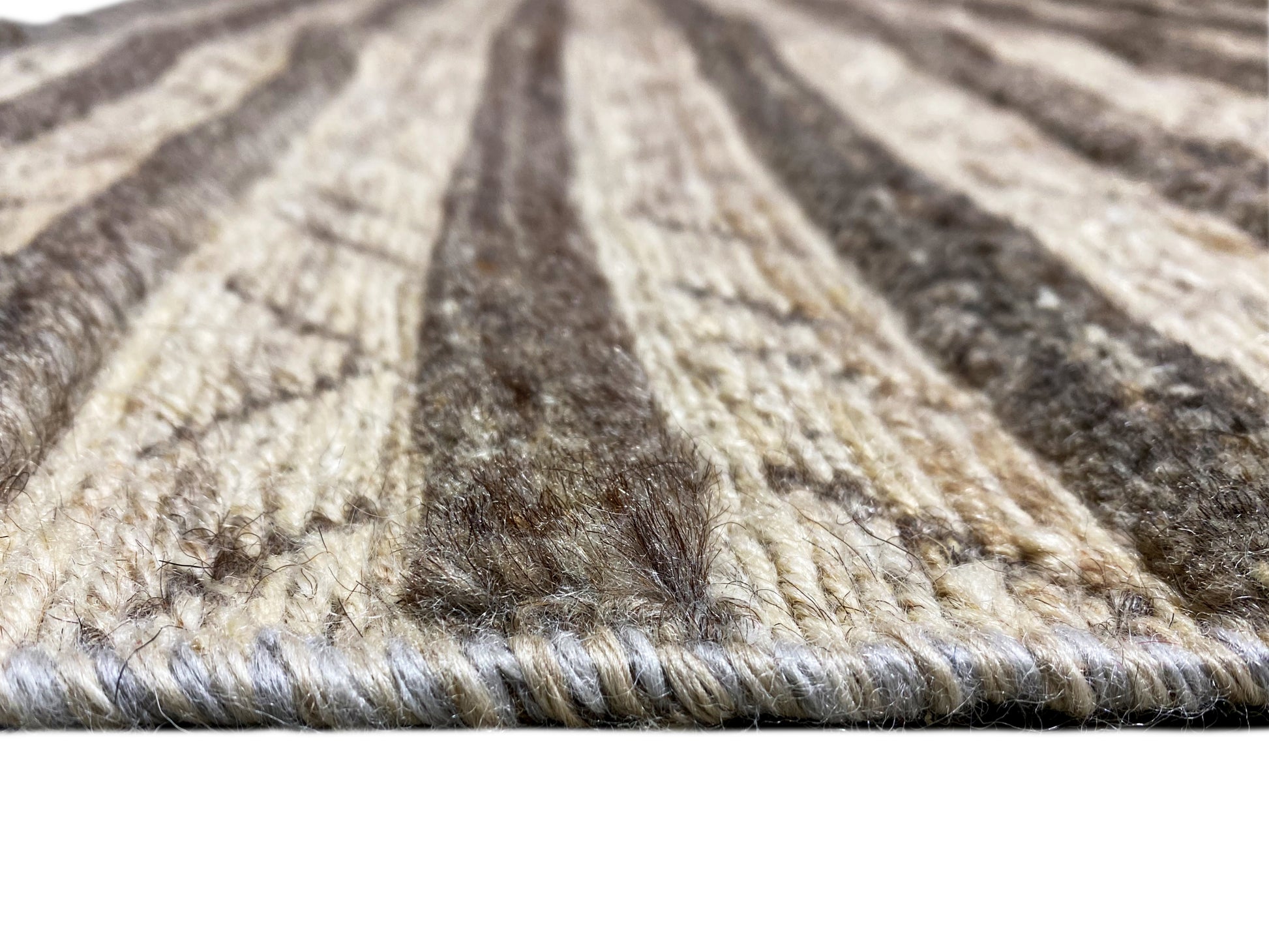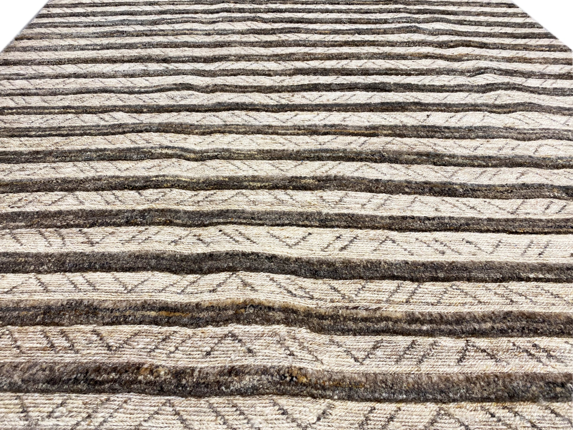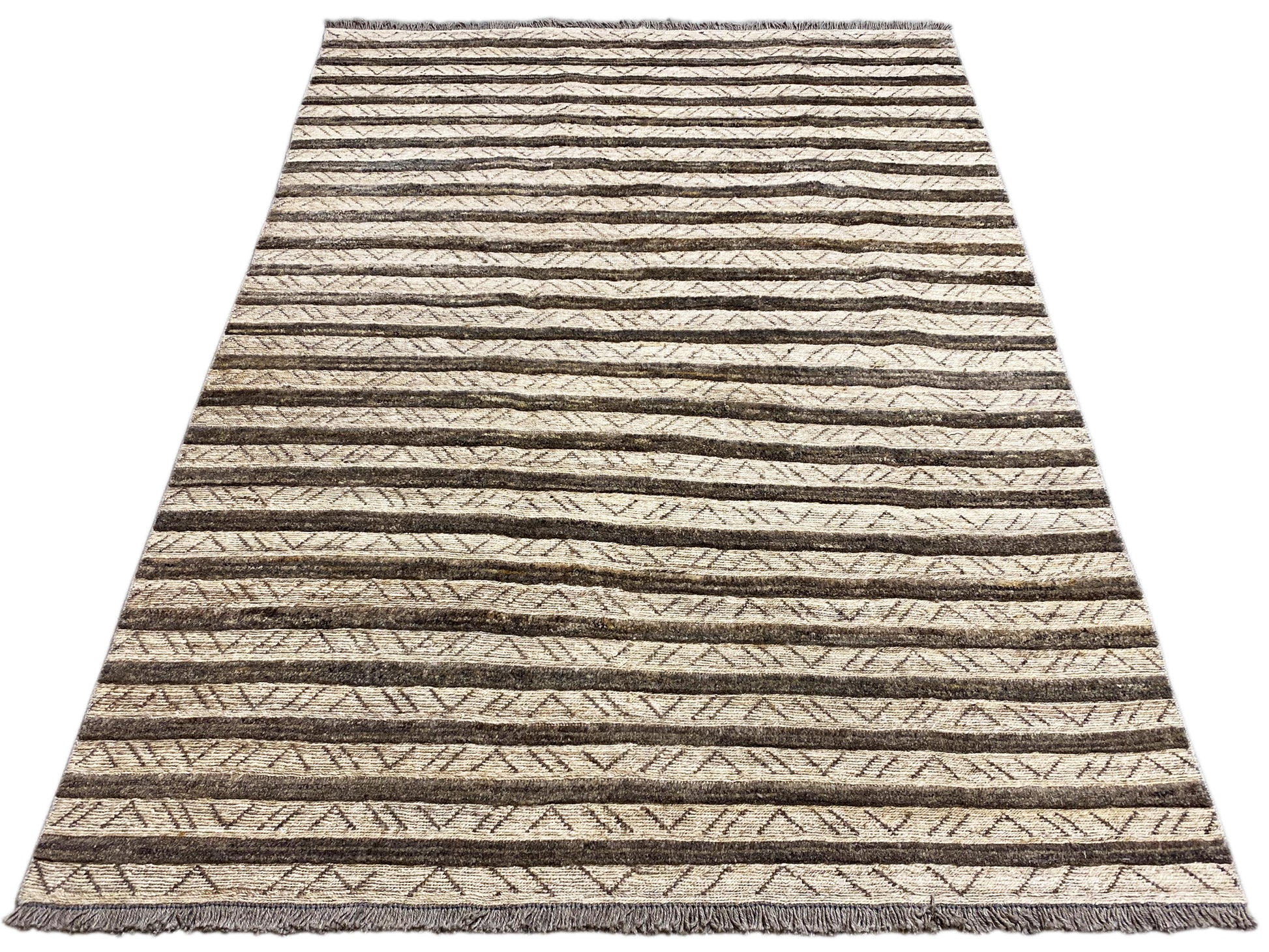 Questo tappeto Kelim Gabbeh tessuto a mano in 100% lana filata a mano unisce un'eleganza naturale a un raffinato motivo a strisce geometriche in beige e marrone. Con le sue dimensioni di 190x140 cm, è ideale per soggiorni e sale da pranzo e si abbina perfettamente a stili d’arredo moderni, scandinavi e ispirati al boho. Il discreto motivo tribale conferisce al tappeto carattere e profondità, mentre l’alta qualità della lana garantisce durata, resistenza e una piacevole sensazione di morbidezza sotto i piedi – perfetto per ambienti eleganti e accoglienti.