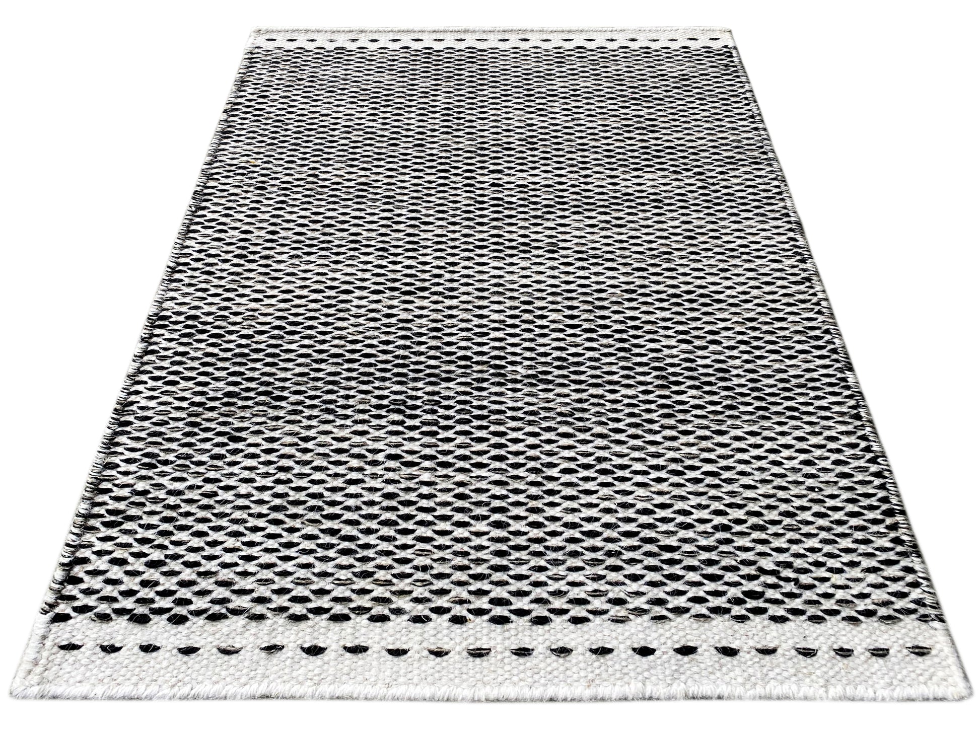 Questo tappeto Kilim tessuto a mano in 100% pura lana si distingue per il suo motivo a pois puntinato espressivo in un intramontabile nero e bianco naturale. Con le sue dimensioni compatte di 60x90 cm, è perfetto come accento elegante per il corridoio, la cucina o come tappeto di alta qualità davanti al letto. La fibra naturale di lana offre una consistenza robusta ma piacevole al tatto, mentre il design a tessitura piatta si adatta perfettamente a uno stile abitativo moderno o scandinavo. Grazie alla sua lavorazione di prima classe, questo tappeto è particolarmente durevole, facile da curare e utilizzabile su entrambi i lati, rendendolo un arricchimento sostenibile per ogni interno esigente.