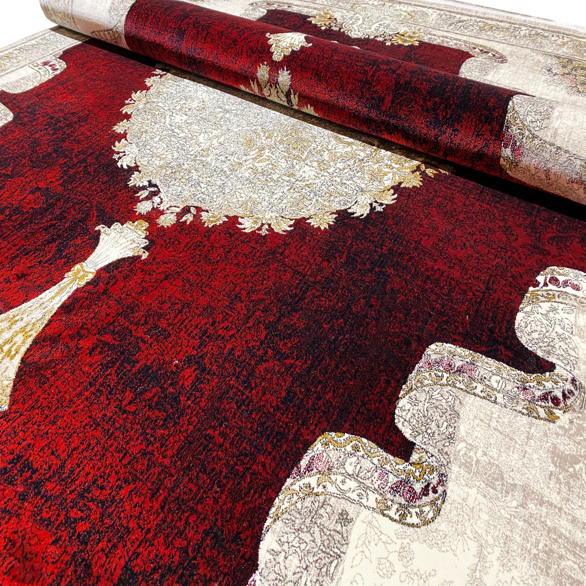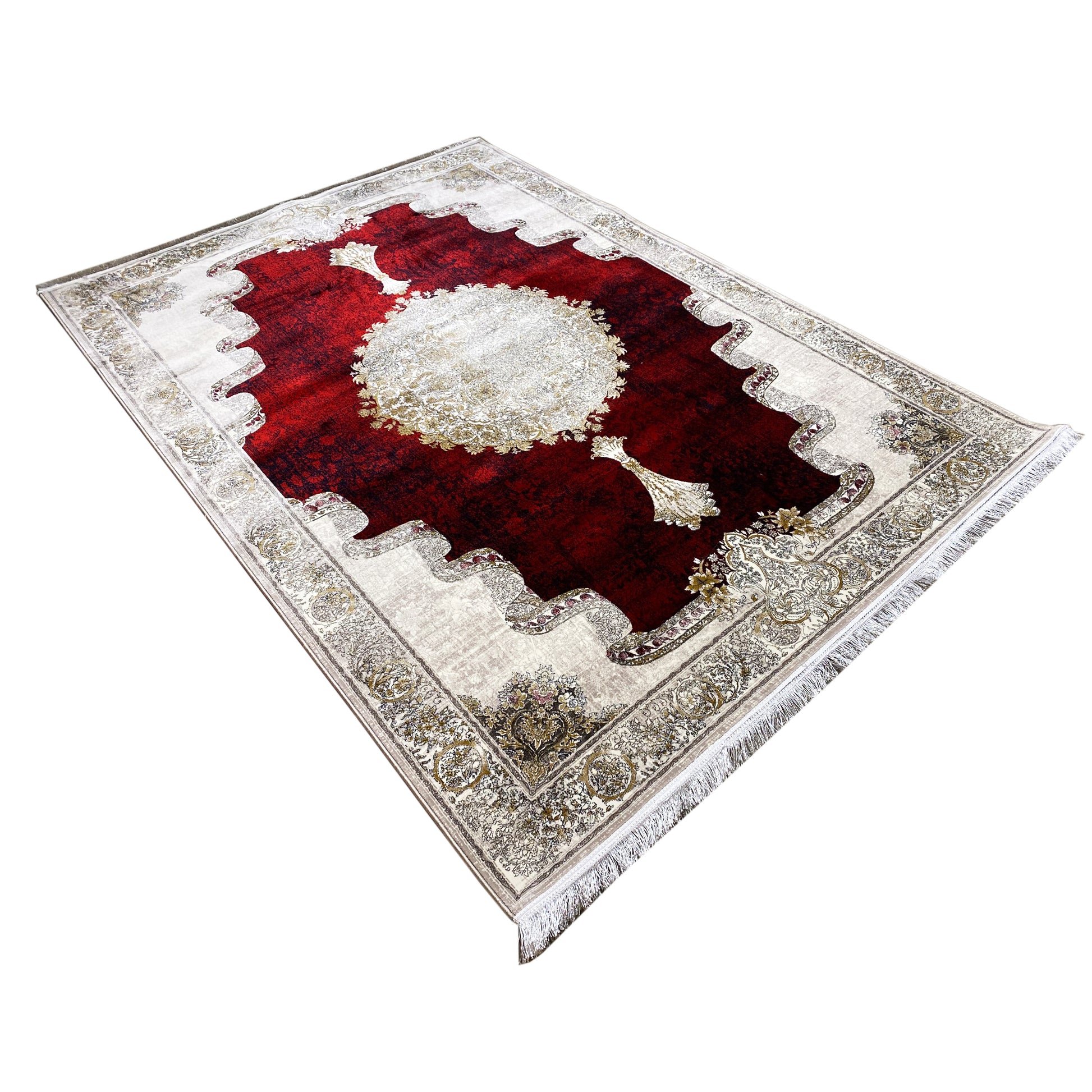 Trasforma il tuo spazio con questo tappeto classico distintivo e bello. Il vivace campo interno rosso e il medaglione crema artistico creano un punto focale lussuoso, circondato da un bordo finemente lavorato con una forma unica. Realizzato in 100% acrilico trattato termicamente, questo tappeto morbido e resistente è perfetto per aggiungere calore ed eleganza al tuo soggiorno o sala da pranzo. La generosa dimensione di 170x240cm è ideale per definire uno spazio e fare una dichiarazione.